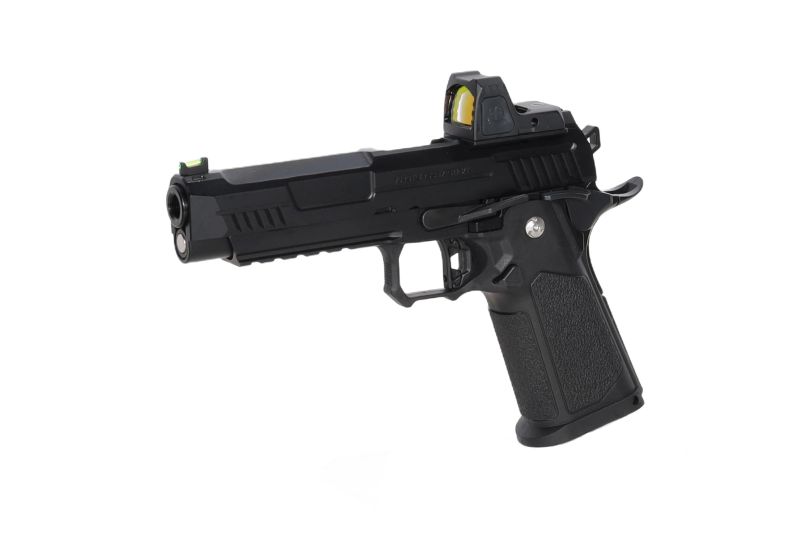 The latest pistol, the VANGUARD 5” HI CAPA OPTICS READY, comes complete an ARS-1 red dot sight, and due to the pre-installed red dot sight plate on the breech, you basically get an airsoft pistol with a red dot sight as soon as the box is opened.