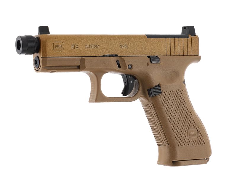 “The GLOCK 19X MOS is a special version in the live-fire original that was realized exclusively on request for an American wholesaler, as the G19X is not available with a MOS cut as standard. The platform is further enhanced by a muzzle thread (M14x1 left) to accommodate a suppressor. The high suppressor sights allow for precise aiming even with a suppressor mounted.