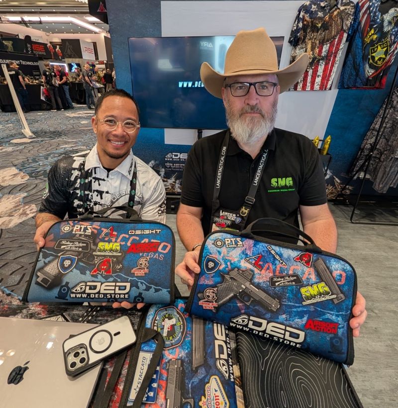 Once John caught up with us we all made our way over to DED (Dead Eye Designs) where I collected some special pistol cases that I had designed as part of the ‘Project Staccato’ article series. We checked out the 5.11 booth where the author Jack Carr (his pen name) who is a retired US Navy SEAL, along with Taran Butler aka Taran Tactical! We passed Lena Miculek as she was on her way to an appearance at another booth.